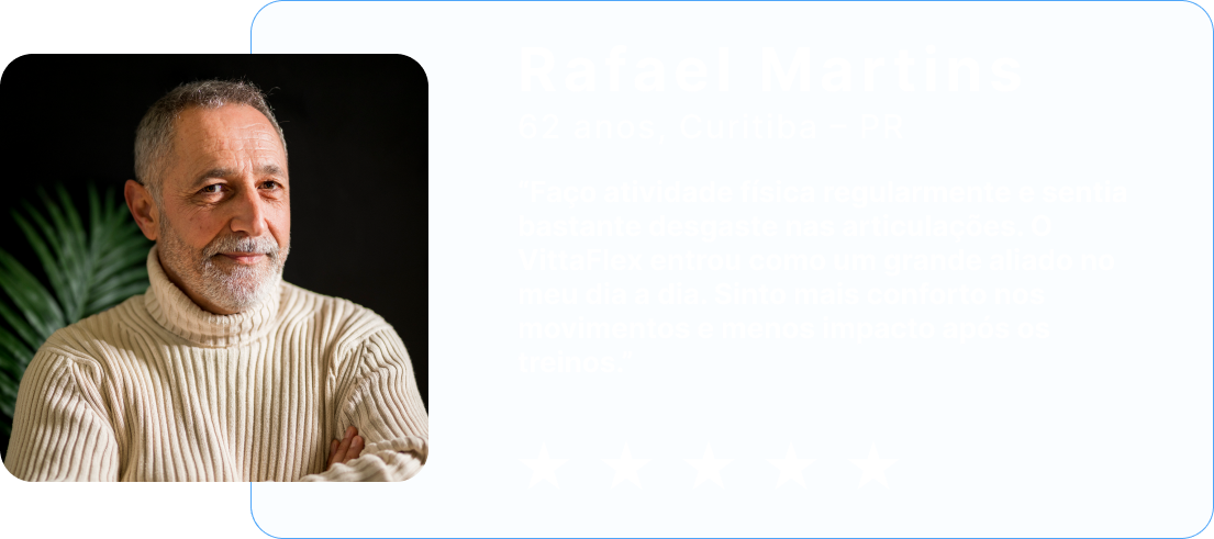Sim. A idade não é o foco. O desgaste articular pode ocorrer em diferentes fases da vida, e o VittaFlex foi desenvolvido para apoiar esse cuidado de forma contínua.