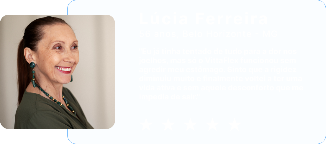 O VittaFlex não é um produto de efeito imediato. Por atuar na nutrição e no suporte articular, os primeiros sinais costumam ser percebidos após cerca de 30 dias de uso contínuo. Os resultados tendem a evoluir gradualmente conforme o uso é mantido.